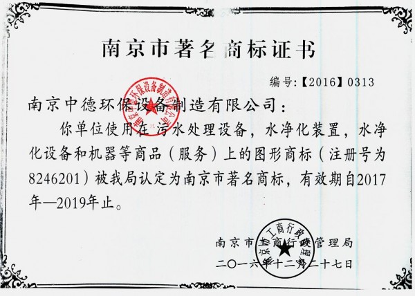 南京市著名商標證書
