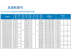 其他壓濾機(jī)型號(hào)及技術(shù)參數(shù)如圖
