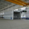 整體移動式噴漆間的設(shè)計目的,是為了滿足較大型工件 打磨或噴漆的需要。一般情況下每套房體對應(yīng)2~3個排風(fēng)凈化工位,哪個工位上的工件需要噴漆時,房體則行走移動到那個工位,其他工位可以繼續(xù)打磨工作,待 房體內(nèi)的工件噴漆完畢后,再控制移動房體行走到打磨完畢后的工件工位,如此設(shè)計可以實現(xiàn)大型工件的不間斷連續(xù)噴漆工作。房體為鋼結(jié)構(gòu)構(gòu)造,房體立柱下面設(shè)置有兩臺電動驅(qū)動行走機構(gòu),行走機構(gòu)沿地面軌道行走。移動房體兩端設(shè)置有電動卷簾大門,房體行走時,大門升起,待到達(dá)位置時,大門降落關(guān)閉。大門與行走機構(gòu)由電氣控制部分連鎖控制,大門升起后,房體才可移動行走。