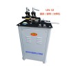 2. 焊接完成后,松開夾緊裝置,把兩電極移開大約2.5厘米左右,使焊口處在兩電極中間位置,然后壓緊。按下回火按鈕,(按回火按鈕時必須注意本焊機為脈沖式回火,即按下按鈕后立即松開然后連續(xù)間斷按下、松開)同時觀察鋸條焊口處呈暗褐色(溫度約在580—6300C)停止回火,回火時不要使鋸條呈現(xiàn)亮紅色,如出現(xiàn)亮紅色,說明回火溫度過高,必須使鋸條冷卻后再進行第二次回火,否則不能使用。