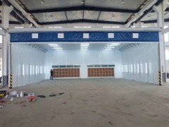 伸縮移動噴漆房整體為框架傳動結(jié)構(gòu),每組框架間均有阻燃PVC布密封連接,安裝快捷、外形美觀,結(jié)構(gòu)精巧,使用方便,制造成本低,節(jié)約!工作中房體沿地面鋪設(shè)的軌道前后伸縮移動,采用兩邊分別驅(qū)動,互相連鎖的方式運行,前后安全限位控制,機械運行安全穩(wěn)定,操作簡單,使用方便。工作區(qū)內(nèi)安裝有防爆照明燈,可滿足生產(chǎn)中的照明需要!可根據(jù)客戶的實際生產(chǎn)需要定做各種型號的非標尺寸;在無需進行噴漆流程的工作時間內(nèi),可將前室并攏,節(jié)省空間場地作為其他與噴漆交叉作業(yè)的工序所使用。